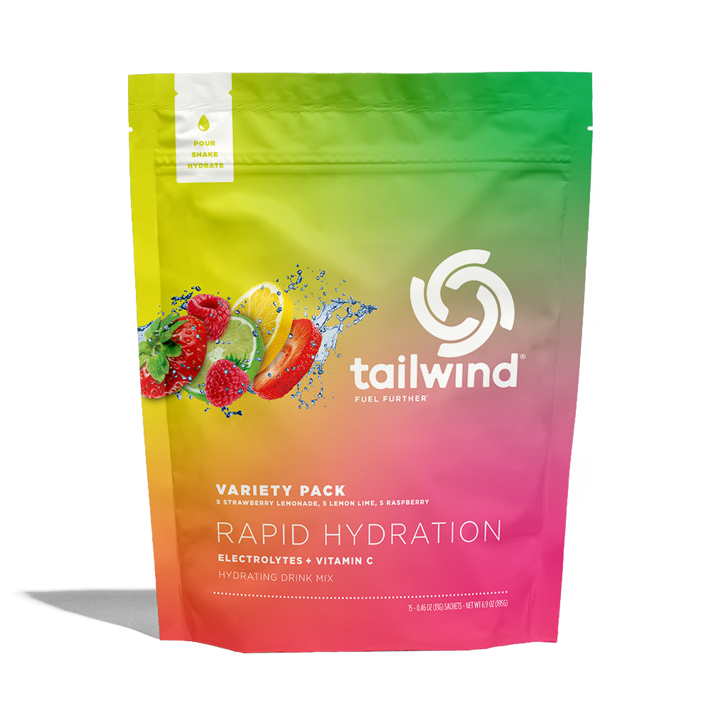 Mix one packet of Tailwind Rapid Hydration with 16-24oz of water for optimal flavor and hydration.