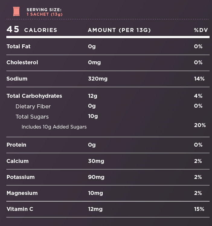 Rapid Hydration contains the right ratio and amounts of electrolytes found in sweat along with Vitamin C, a natural antioxidant to give your body a boost.